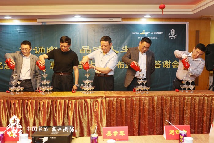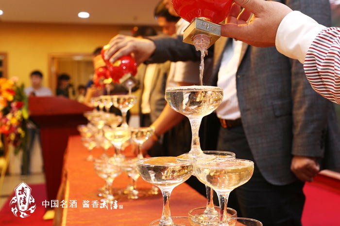 在本次新品上市发布会的开酒仪式上,武陵酒销售公司总经理曹晏、专卖店事业部总监王珂,惠州经销商刘玉善和与会嘉宾一同启开了武陵上酱年份酒,举杯同贺武陵上酱年份酒在惠州成功上市。