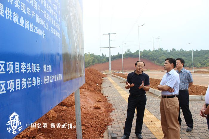 常德市委常委、组织部长朱水平视察武陵酒业生态园项目建设工地(右一)