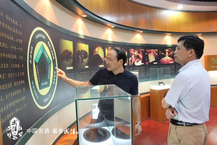 武陵酿酒公司总经理宋冠毅向朱水平介绍武陵酒的生产工艺
