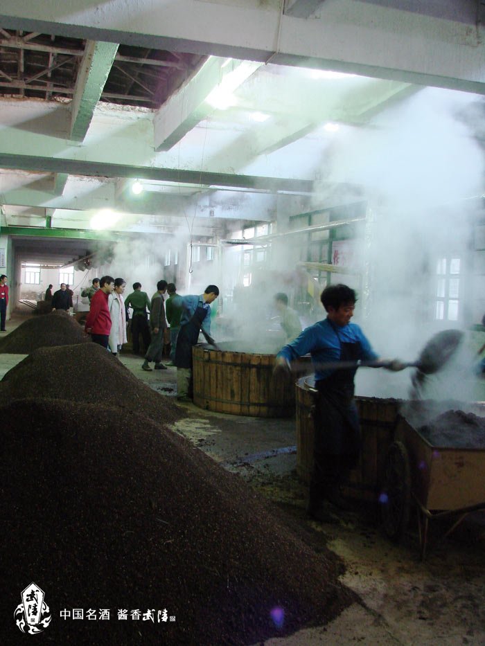 武陵酒“四高两长”工艺中的“四高”,都在酿酒车间完成。“四高”是指:高温制曲(高温达到70度,蒸煮需3个小时左右),高温堆积发酵(高温达到55度,堆积发酵需7天左右),高温入池发酵(高温达到48度,入池发酵需30天左右),高温分级取酒(高温达到40度,每轮取酒需2个小时左右,一共分7次取酒,取酒讲究掐头去尾,第一次和第七次只会用来养护酒窖)。