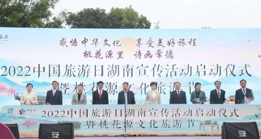 5月19日上午,2022中国旅游日湖南宣传活动启动仪式暨桃花源文化旅游节在常德桃花源盛大开幕。本次活动由省文旅厅和市人民政府联合举办,市文旅广体局、桃花源旅游管理局、市城发集团共同承办。开幕式主会场设在桃花源景区主游客中心前坪。活动现场,全省14个地州市安全文明旅游宣传和非遗文创展览,凸显各地文化旅游资源。