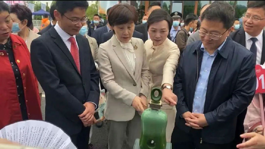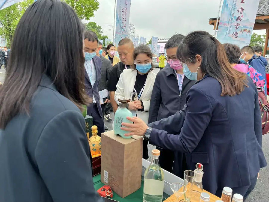 湖南省人大常委会党组成员、副主任陈文浩,湖南省委宣传部副部长(兼)、湖南省文化和旅游厅党组书记、厅长李爱武,中共常德市委书记曹志强,常德市人大常委会党组书记、主任余怀民、常德市人民政府副市长杨成英一行参观武陵酒展位。