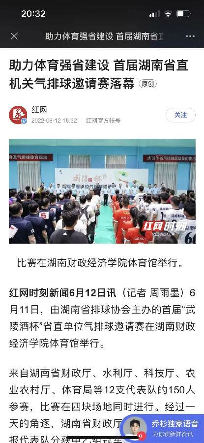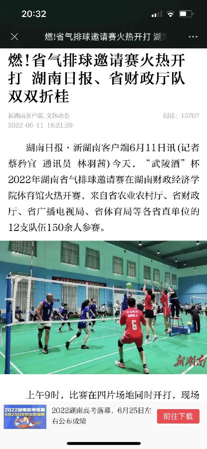 “好球!””“加油”“让我来、让我来!”“扣杀成功,太棒啦!”——湖南财政经济学院体育馆人声鼎沸,叫好声、加油声此起彼伏,由省排球协会主办的首届“武陵酒杯”省直单位气排球邀请赛顺利举行。
