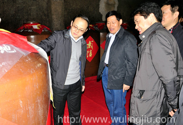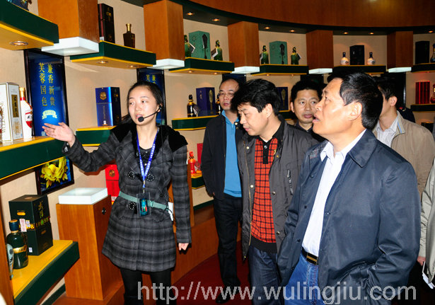 湖南武陵酒销售有限公司总经理宋冠毅向徐超文副市长介绍武陵私藏酒