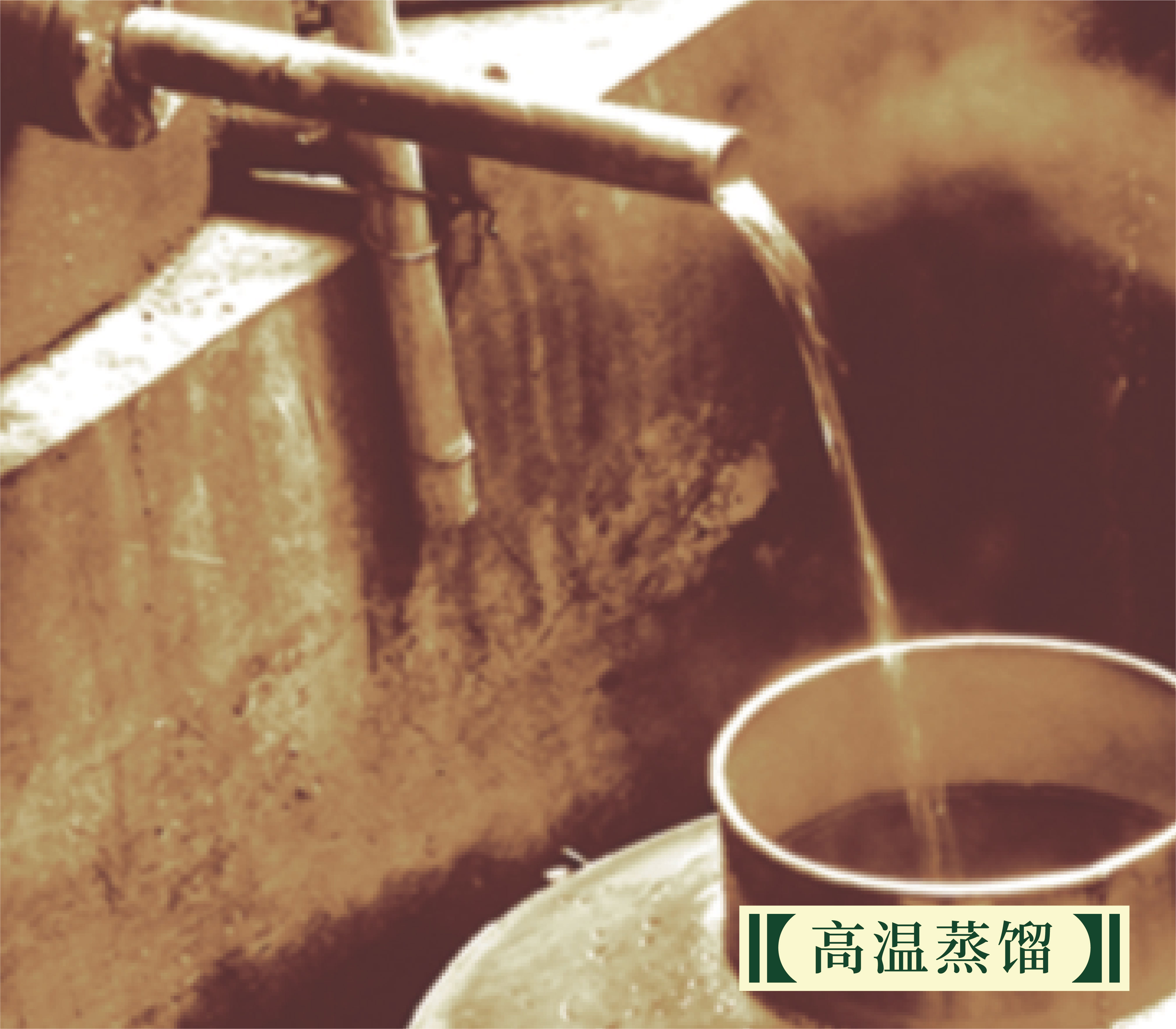 高温蒸馏——高温蒸馏是根据不同物质的馏分及沸点所采取的特殊工艺,尽可能使发酵生成的酱香风味物质最大限度地集聚在酒中,使酱香更加突出、质量更好、风格更典型。酱香型酒的馏酒温度在35-40℃之间,比其它白酒高10℃以上。在高温的条件下,不但能成功分离和收集经发酵产生的有效香味成份,同时还能有效去除挥发性强的剌激性的低沸点物质,更多地保留不易挥发的高沸点物质,使得酱酒中的总酸、总酯都高于其它香型酒,从而使酒质更加醇厚丰满。 |